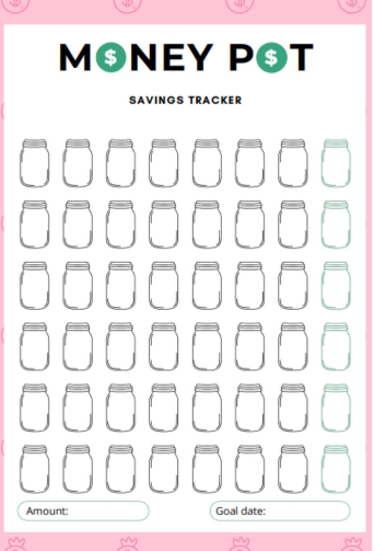 The Money Pot Savings Tracker is a practical and visually appealing template. It helps you track savings toward one specific goal.