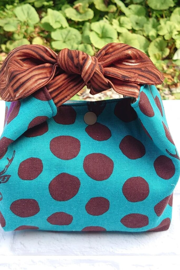This lunch bag is clever because the handle is made from the bag itself. Cut two rectangles from sturdy cotton fabric. Sew them together to form a simple box shape with a lining.