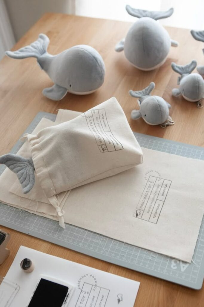 These plush whales are very simple and fun to make. Cut the whale body and tail shapes from soft fleece or felt. Sew them together, leaving a small opening for stuffing.