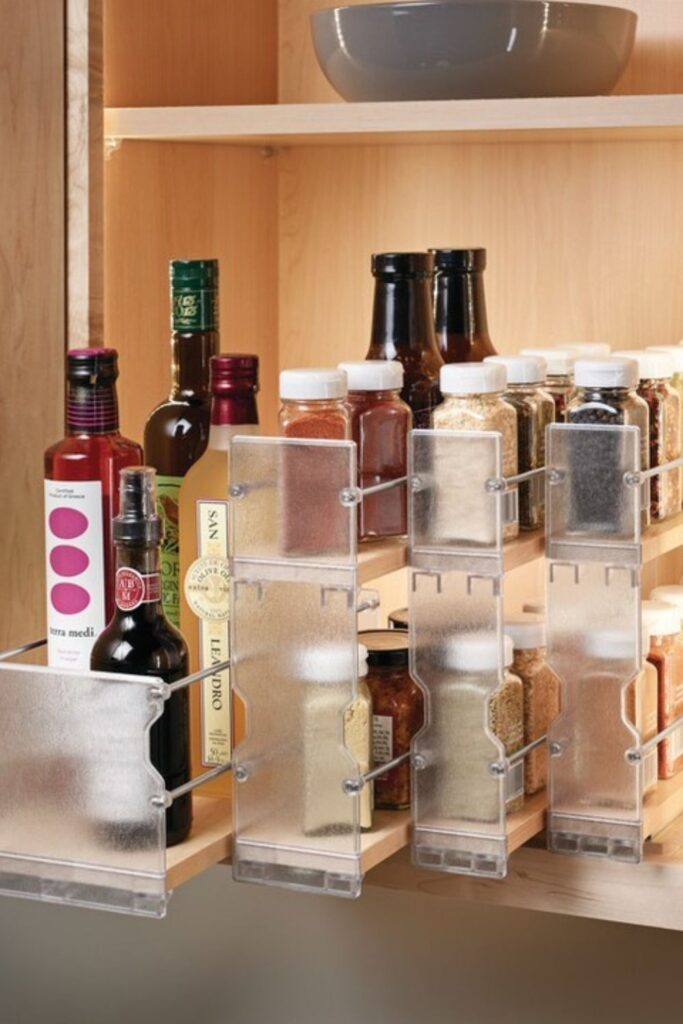 Improve your cabinets with clear-front pullout racks for smooth storage. These are ideal for spices, oils, and sauces. The sliding shelves make sure you can see everything perfectly without moving items around. The clear panels let you see the labels, so you never have to search for what you need. Change your cabinet into a mini spice shop that keeps everything tidy and easy to reach, even in tight spaces.