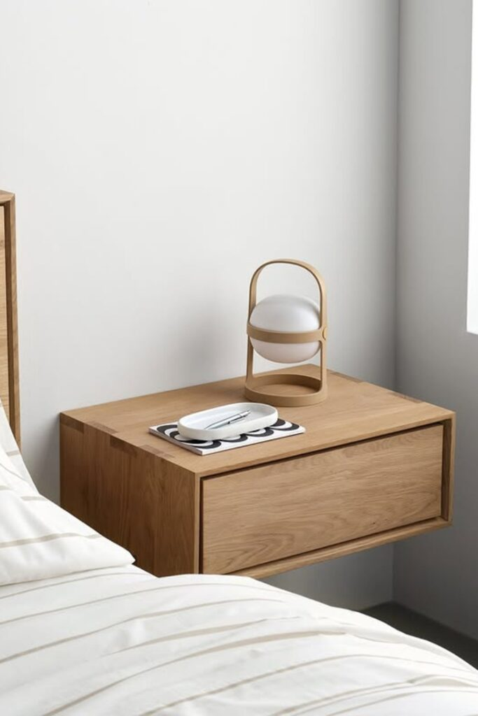 If your nightstand has no drawer, use a small tray on top or a pocket that hangs on the side. Do not let junk pile up. Take one minute each week to clear it off and reset it.