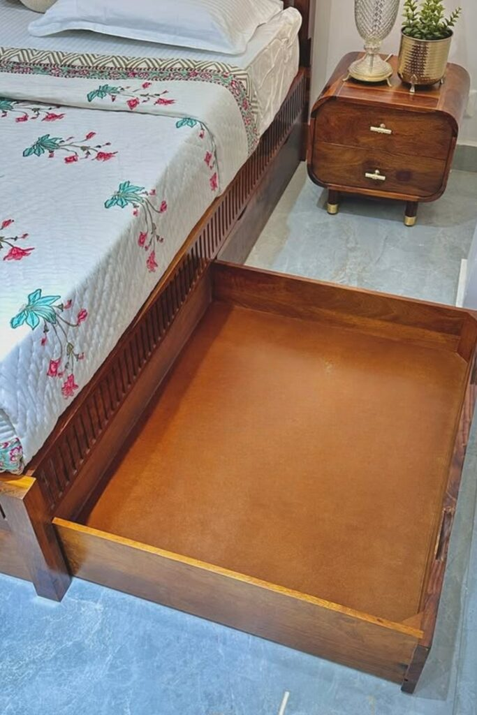 If your room feels small, look for storage space you might be missing. Start with the area under your bed. This is great for out-of-season clothes, shoes, or extra bedding.