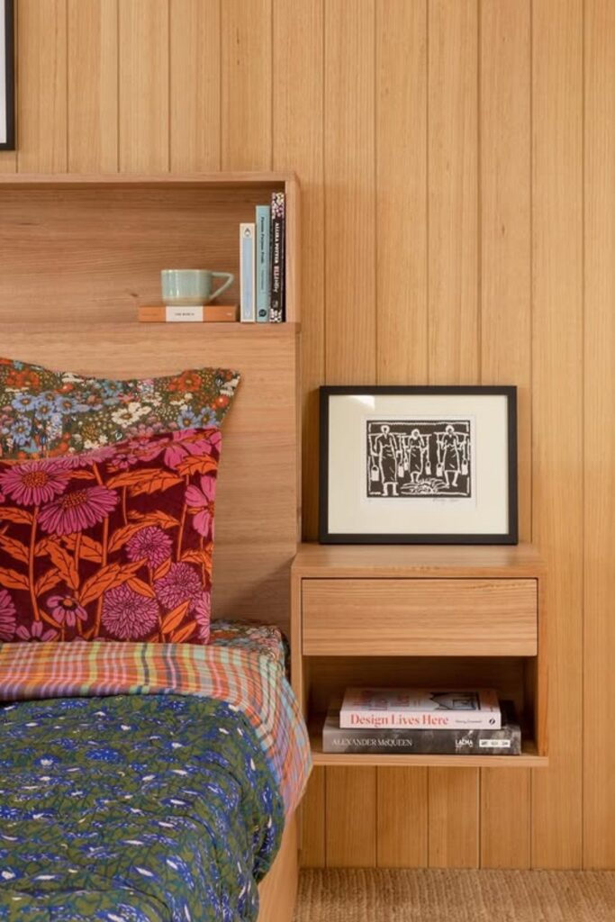Your walls offer extra space that keeps the floor clear. Install floating shelves above your bed or dresser. You can place books, plants, or decorative baskets on them.