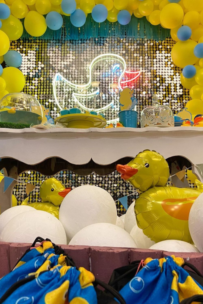 Duck-themed table items bring smiles and laughter, making the party feel happy and lively.