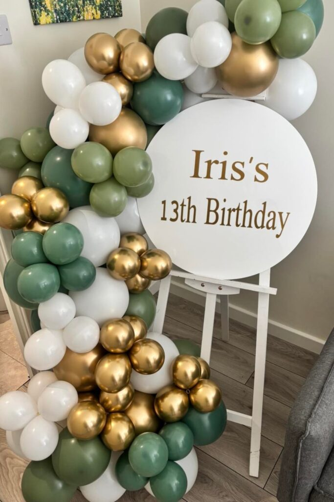 An elegant balloon arch creates a polished and welcoming entrance for a 13th birthday party. It instantly sets the tone and makes the space feel special.