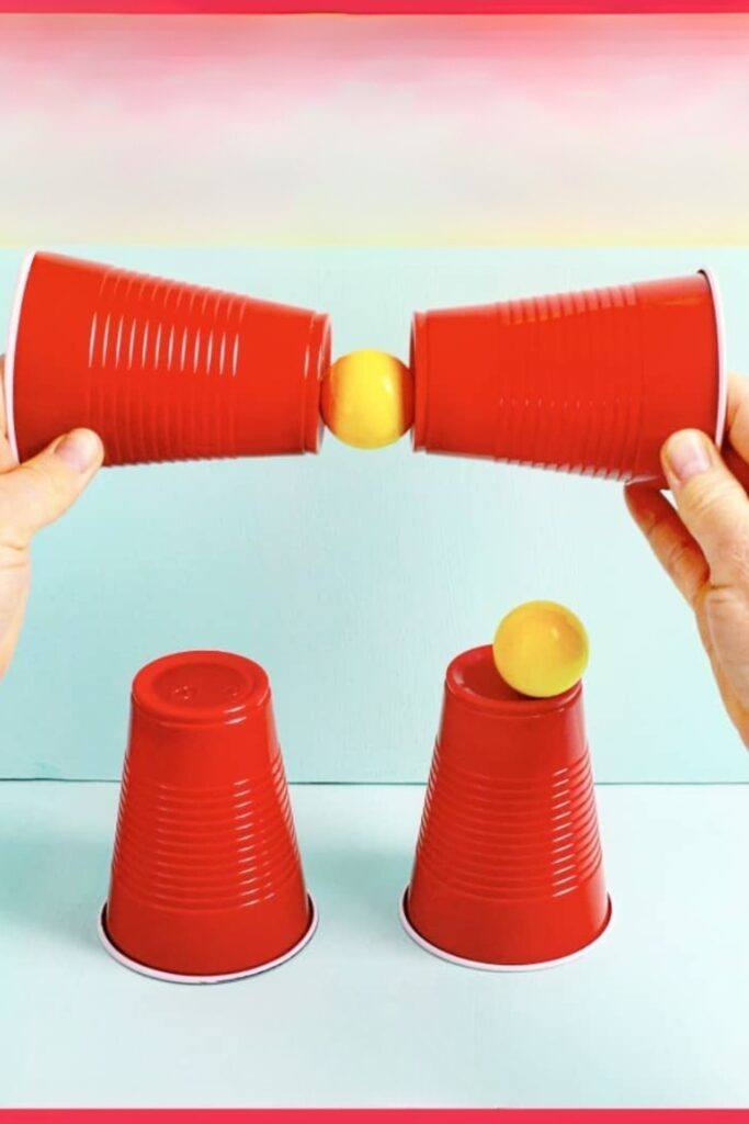 This game is full of fast excitement. The player must stack plastic cups into a perfect pyramid shape. Then, they have to take the entire pyramid down, all before the minute ends. You only need a set of cups and a flat surface like a table to play.
