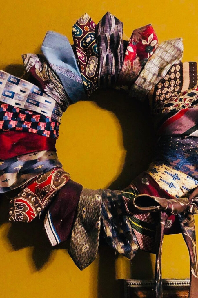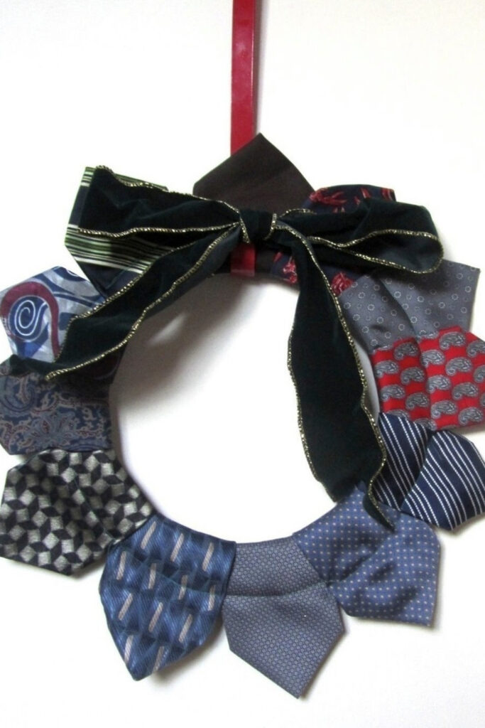 Make your holidays special with a festive wreath from neckties. This decoration adds a personal touch to your seasonal decor.