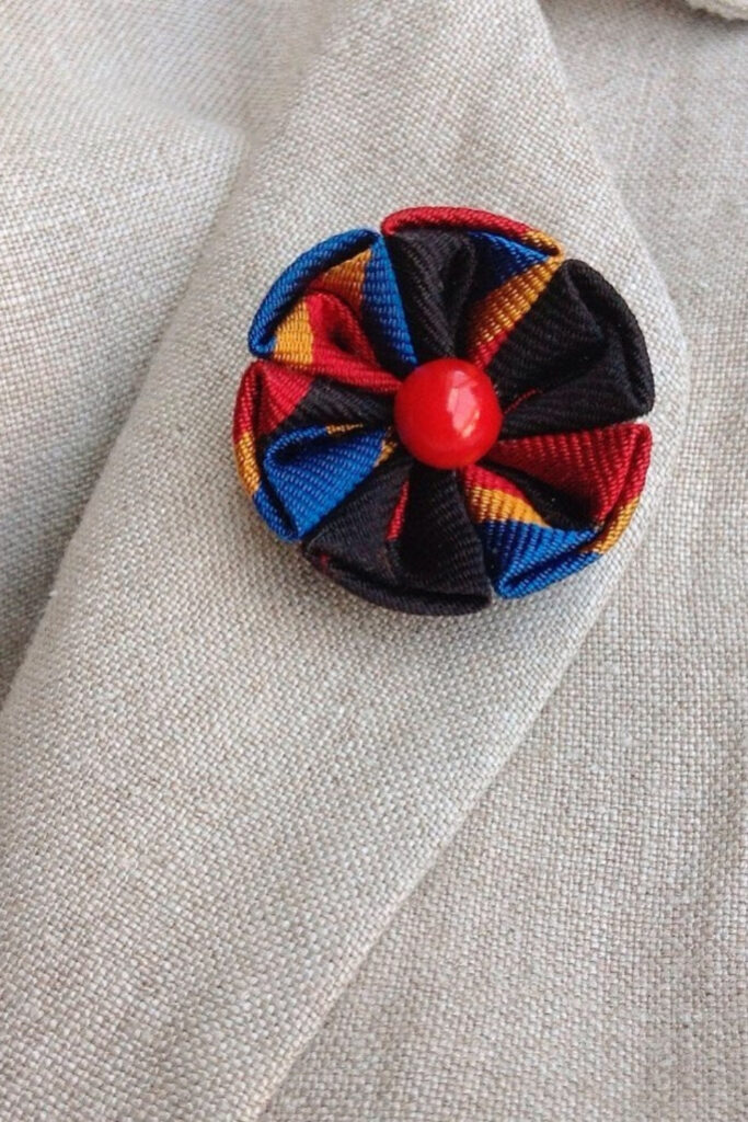 Make a bold accessory by turning a tie into a brooch. This is a creative way to add style to any outfit.
