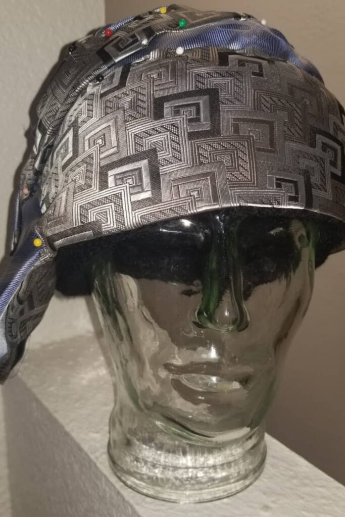 You use the ties to create the panels of the hat. The pointed ends make natural decorations around the sides. Take the ties apart and press them flat with an iron.