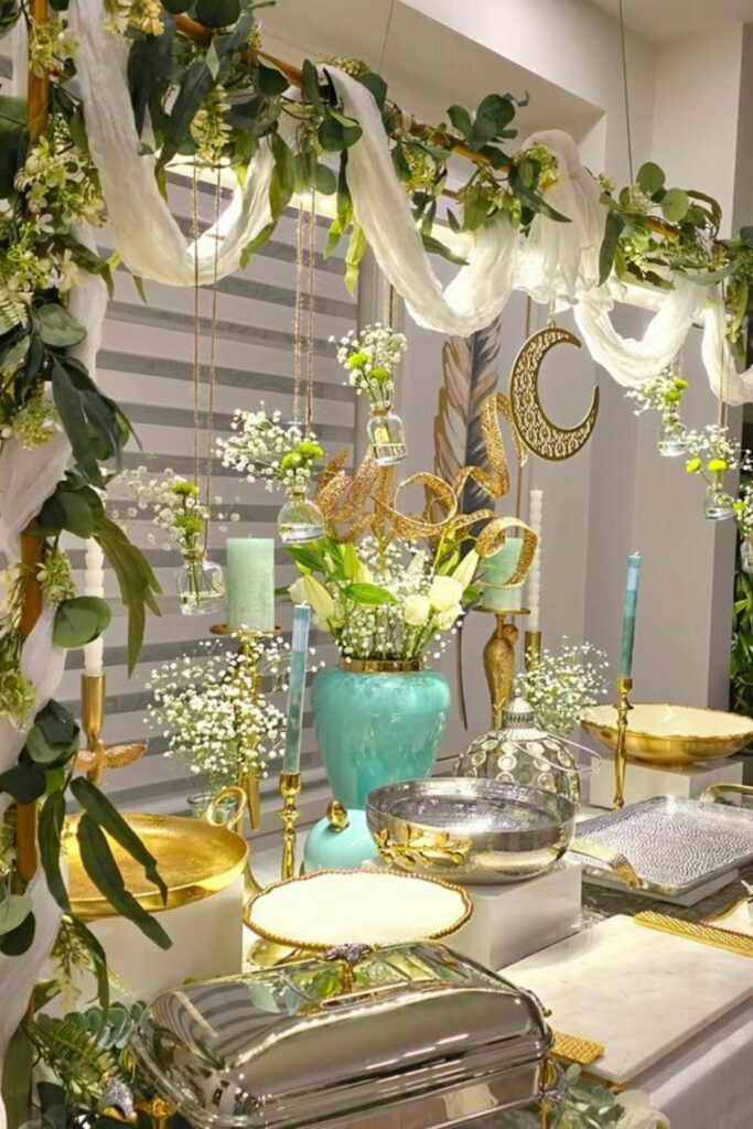 An elegant green buffet creates a calm and refreshing summer look.