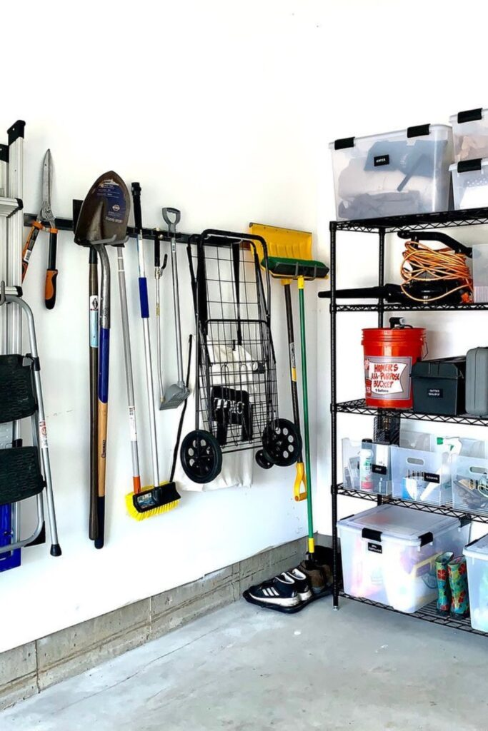 Stop rakes, shovels, and ladders from piling up. Create a dedicated area for them.