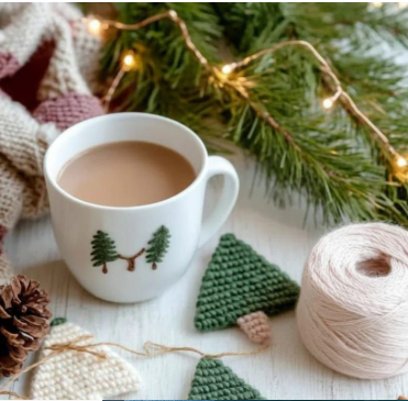 A crocheted garland adds a cozy, handmade touch to a Christmas tree. Use yarn in colors like forest green, cream, and blush pink. You can make simple chains or small shapes even as a beginner.