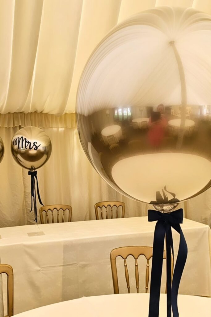 Include smaller “Mr & Mrs” balloons for a personalized head table look.