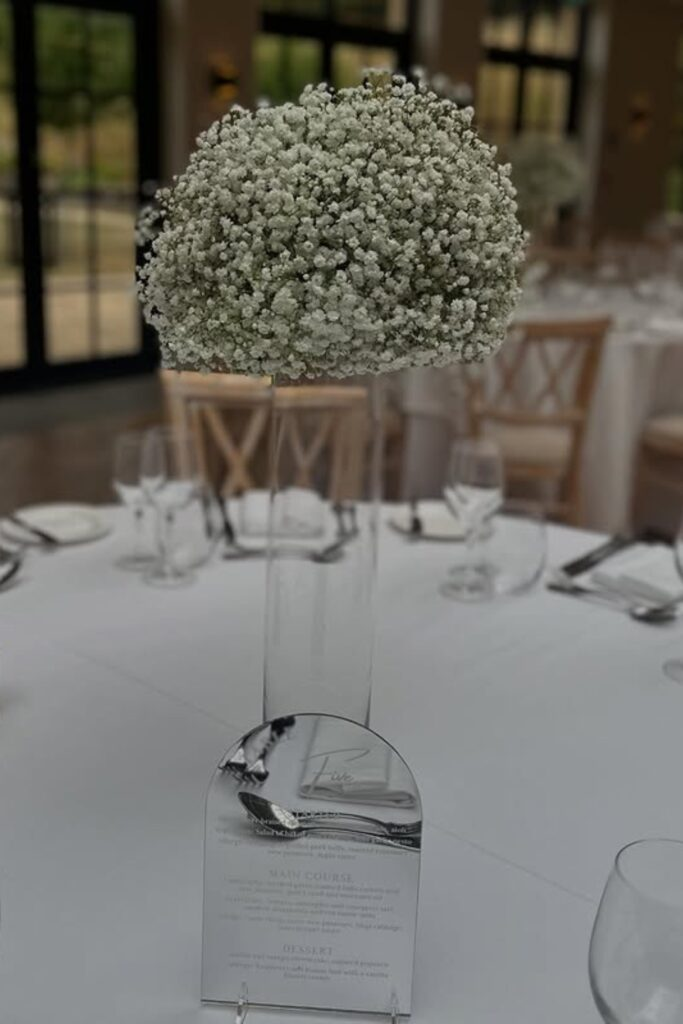 Mirrored bases reflect flowers and candles, creating depth and sophistication.