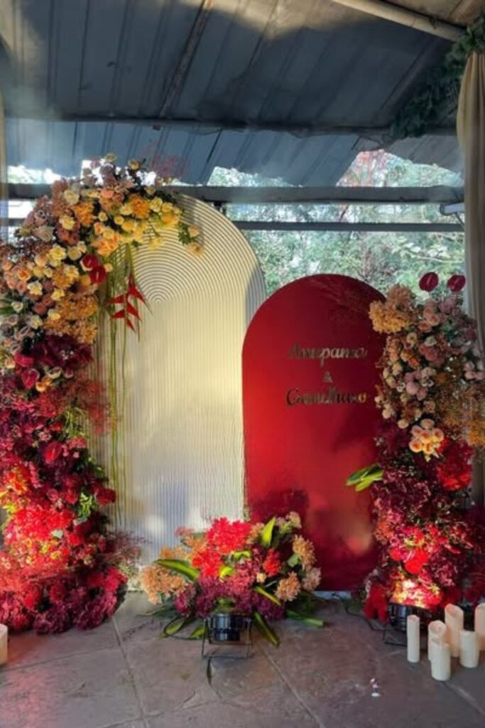 The lights shining through the flowers will create a beautiful, modern effect that looks expensive but is quite simple to make yourself. This backdrop becomes an incredible photo opportunity and ceremony focal point.