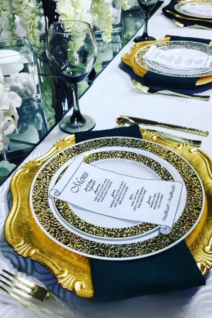 The reflective quality of the gold creates a rich, expensive-looking tablescape. This approach gives you high-end style without the high-end price tag, perfect for creating a luxurious atmosphere.
