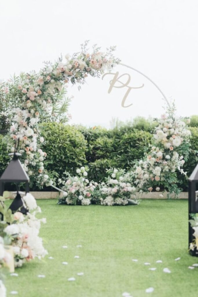 Decorate with flowers and greenery, focusing on one area rather than covering the entire circle. This creates a beautiful frame for your vows or photos that feels whimsical and romantic.