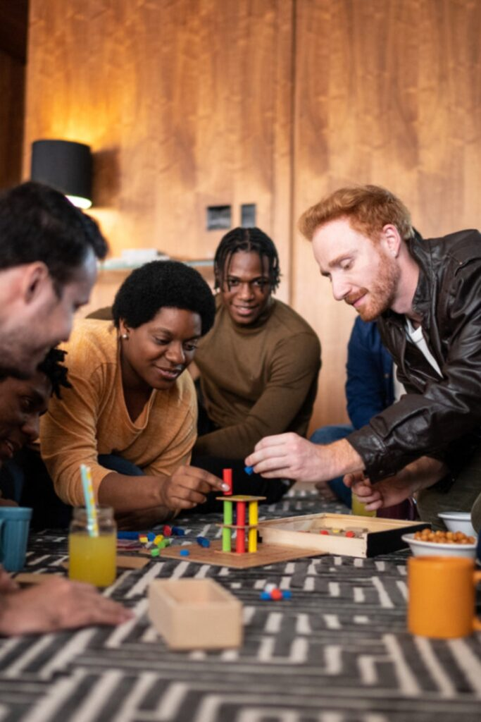 This game is great for pulling a group together in a small space. Use a simple stackable game that people can play in quick rounds.
