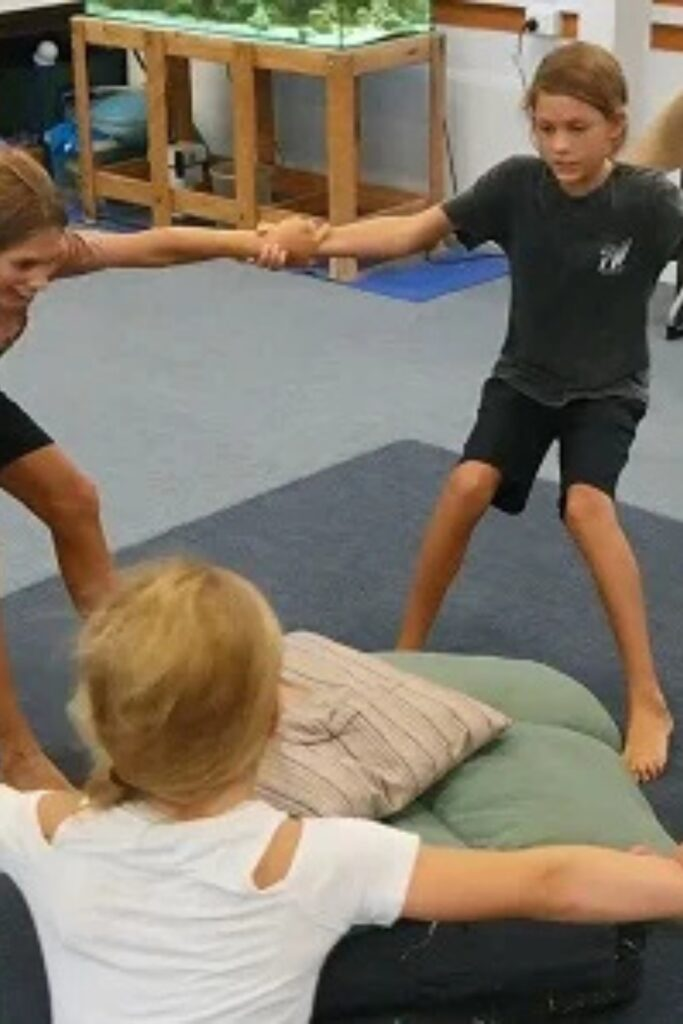 This game requires balance and teamwork. It is a quiet but engaging activity that builds trust within the group.